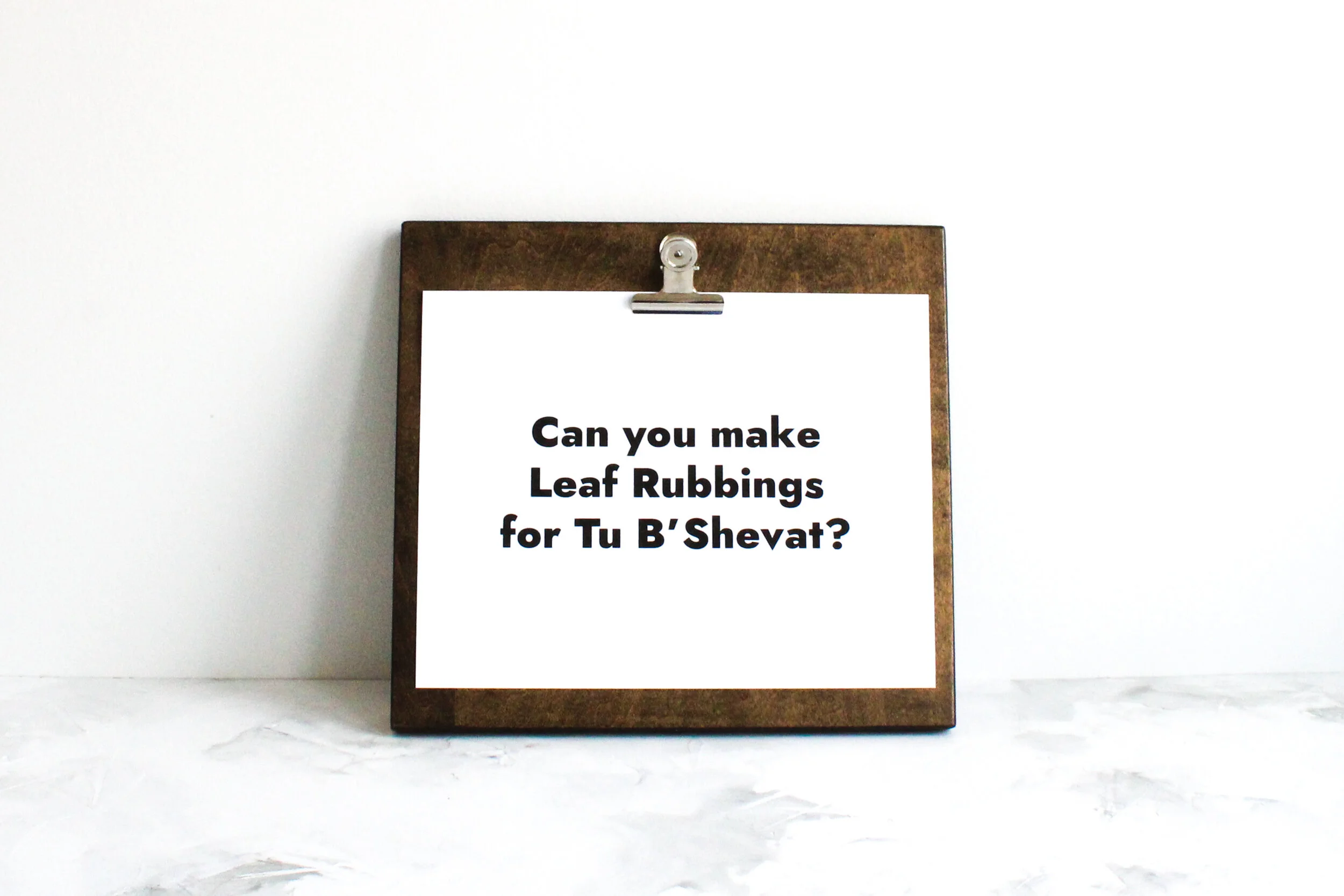 (1) Place your leaf on a flat surface such as a table. (2) Put a piece of paper on top of your leaf and make sure the entire leaf is covered. (3) Get a sense of where your leaf is located, and then hold it in place with your hand so it doesn’t move. (4) With quick and continuous side-to-side motions, move your crayon on your paper where your leaf is located. (5) Right away you’ll start to see the edges and details of your leaf — it’s so exciting! (6) Do this until your entire leaf is revealed — it’s magic! (7) You’ll surely want to make more than one leaf rubbing, so make as many as you like — in different colors, too! When you’re done, if you like, you can use your leaf rubbings as Tu B’Shevat decorations!