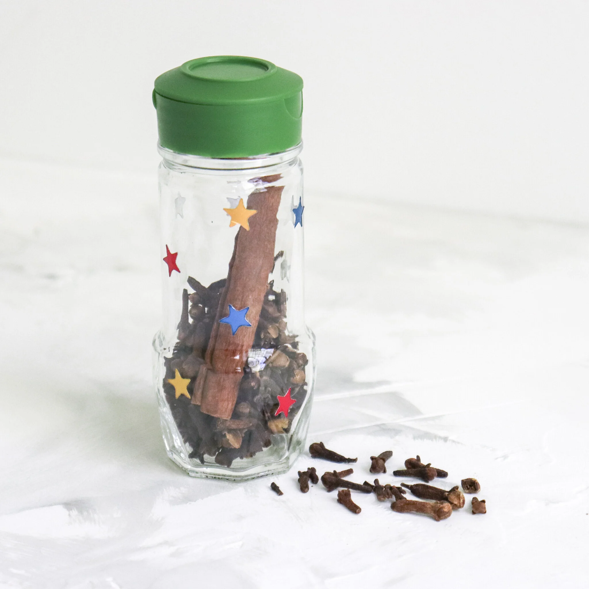 (1) Thoroughly clean and dry a jar. (2) Fill the jar with cinnamon sticks and whole cloves. (3) Decorate the jar with stickers. (4) Use your beautiful spice box to say “goodbye” to Shabbat each week!