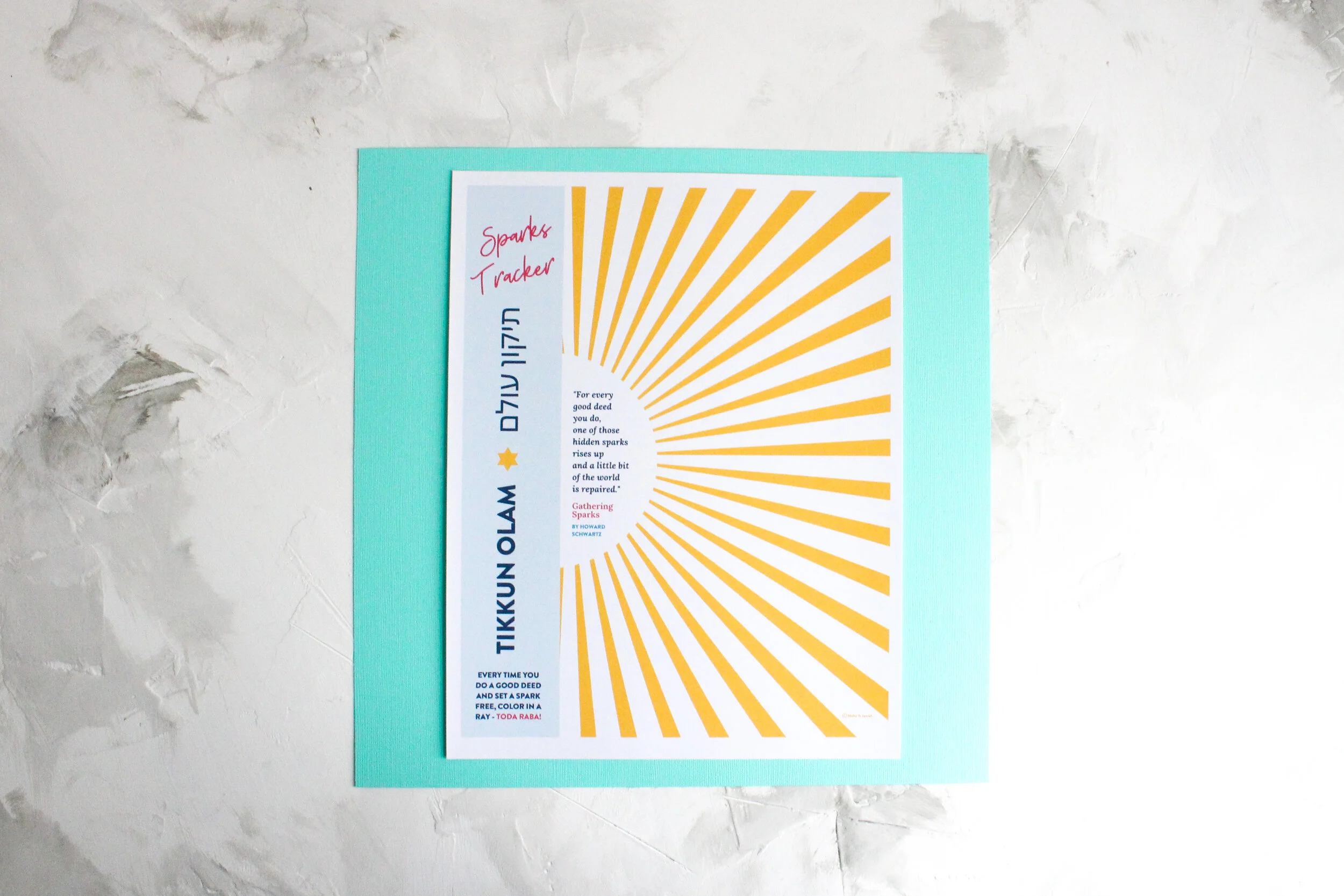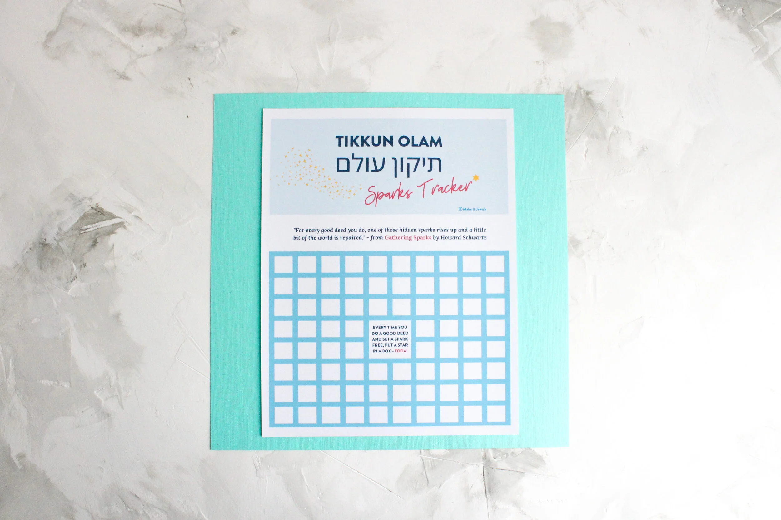 Howard Schwartz’s book Gathering Sparks is perfect for teaching children the Jewish value of Tikkun Olam — repairing the world. In the book, he writes, “For every good deed you do, one of those hidden sparks rises up and a little bit of the world is repaired.” What a wonderful visual to understand that when we do something helpful or kind, it really does make a positive difference. Your kiddos will love keeping track of their “sparks” and seeing that they’re helping make the world a better place with this Tikkun Olam Sparks Tracker (link to the free PDF below). When they fill up one chart, they can start a new one! To keep things interesting, there are three different versions. It would be fun to collect them in a binder for a full year to see how many “sparks” your kiddos collect!